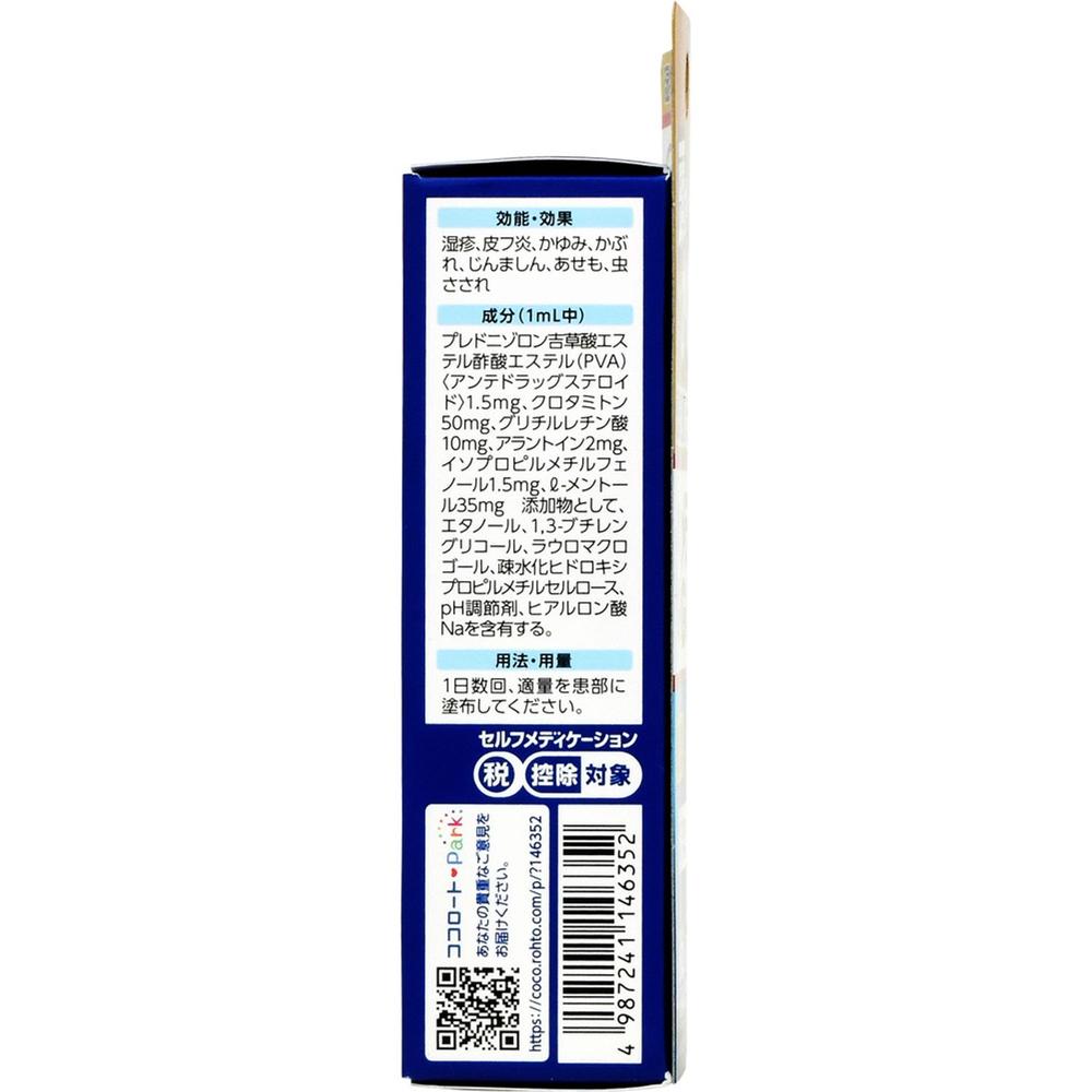 プレドニゾロン吉草酸エステル酢酸エステル (PVA):0.15g:アンテドラッグ型抗炎症成分で、かゆみの元となる炎症をしっかり鎮めます。